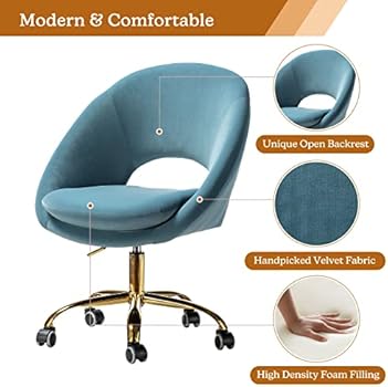 Amazon Com Tina S Home Modern Velvet Office Chair With With Adjustable Swivel Comfy Upholstered Desk Chair With Open Back Small Cute Chair For Living Room Study Vanity Blue Home Kitchen